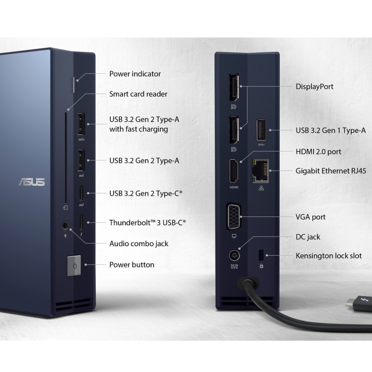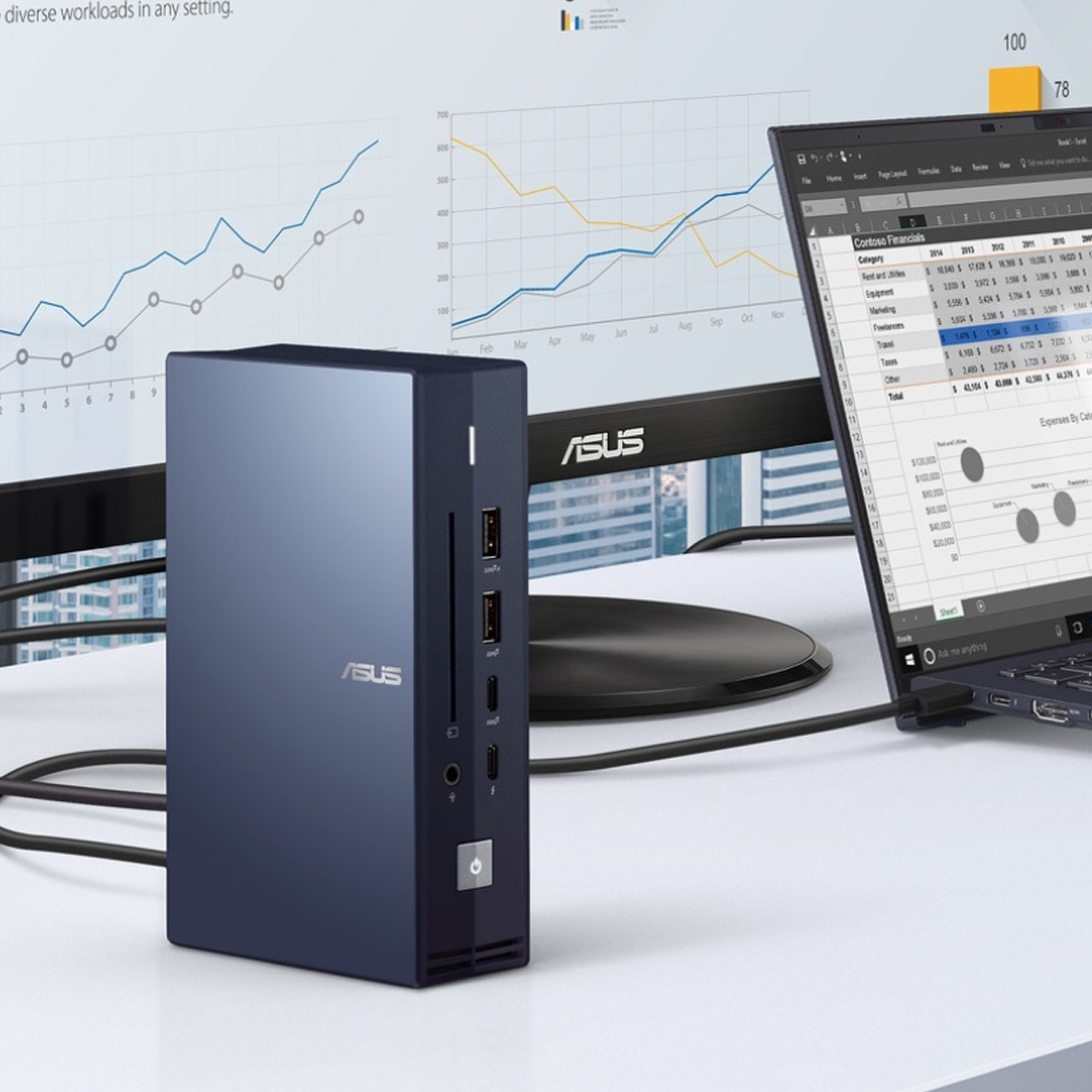ASUS SimPro Dock 2 is a sleek, compact one-stop dock that streamlines laptop connectivity. Attach your laptop via a single cable and it’s powered, connected to your network and peripherals, and is primed for multitasking across up to four monitors — including an up to 8K display. It also has an integrated smart card reader for a diverse array of business. Simply, SimPro Dock 2 keeps your desk neat, tidy and organized while setting you up for work in the blink of an eye.