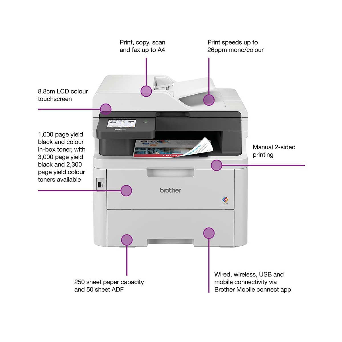 The MFC-L3760CDW can be integrated into workflows with ease and flexibility due to its compact size, helping you to improve productivity in any workspace.