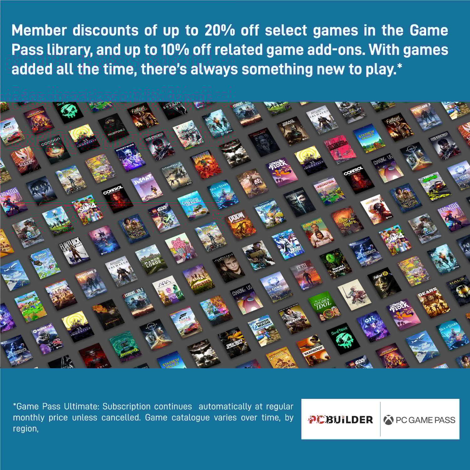 The PCBuilder TITAN Windows 11 Gaming PC also includes one month of PC Game Pass including EA Play. Play over 100 high-quality PC games, in various genres such as Halo Infinite, Forza Horizon 5, and Minecraft on your new gaming rig. With new games added all the time, there’s always something new to play from day one.