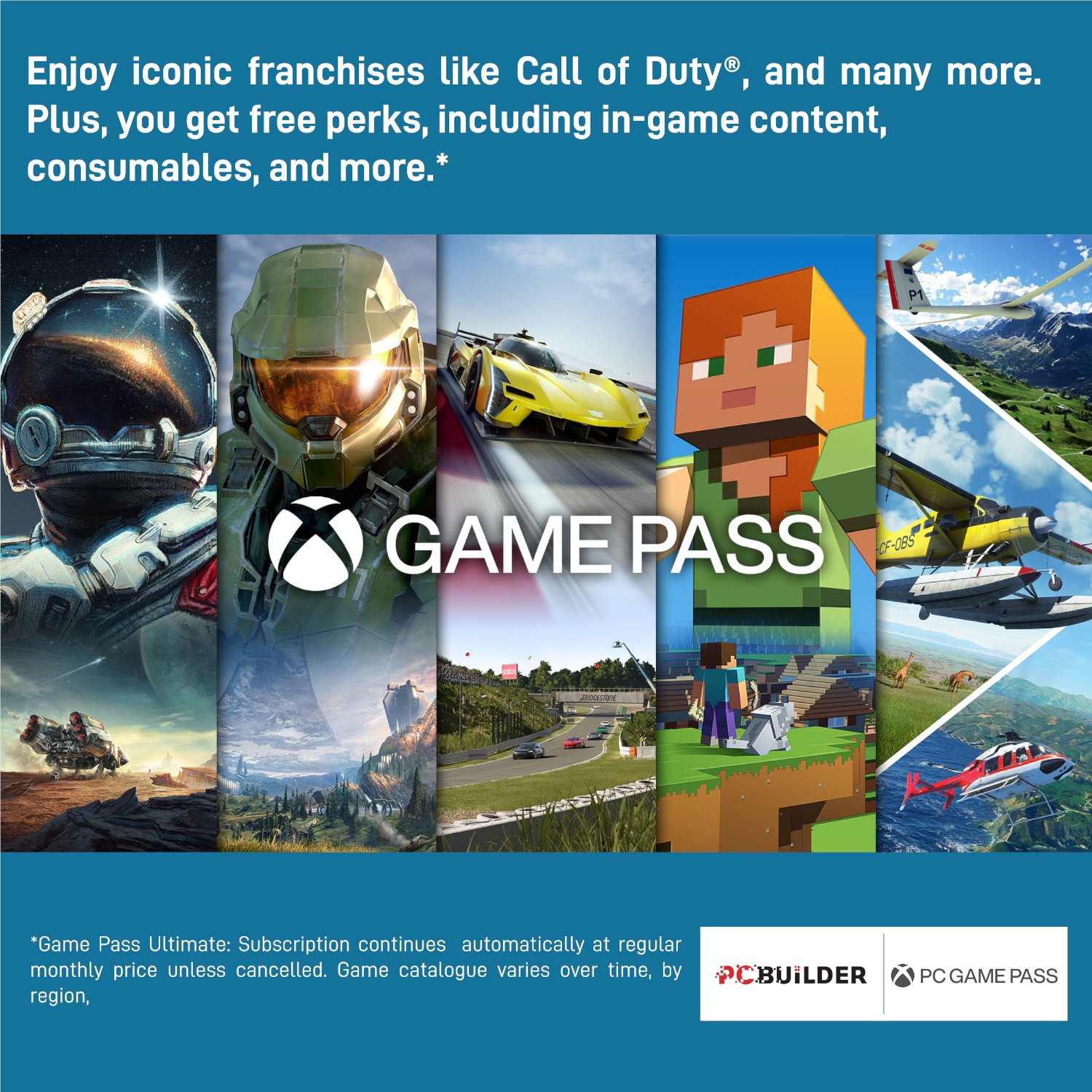 - Play over 100 high-quality PC games like Halo Infinite, Forza Horizon 5 and Teenage Mutant Ninja Turtles: Shredder’s Revenge with your new build and one month of PC Game Pass including EA Play. With new games being added all the time, there’s always something new to play from day one.